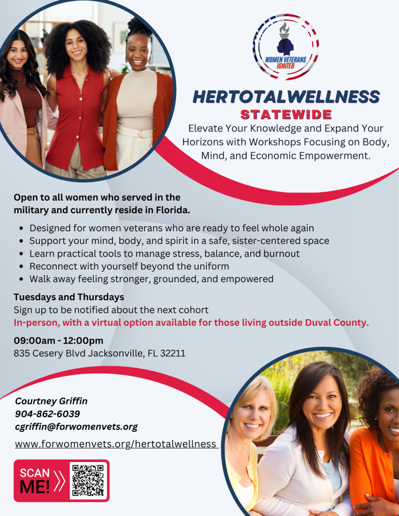 Questions? Reach out to Courtney at cgriffin@forwomenvets.org or call our office at (904) 862-6039.