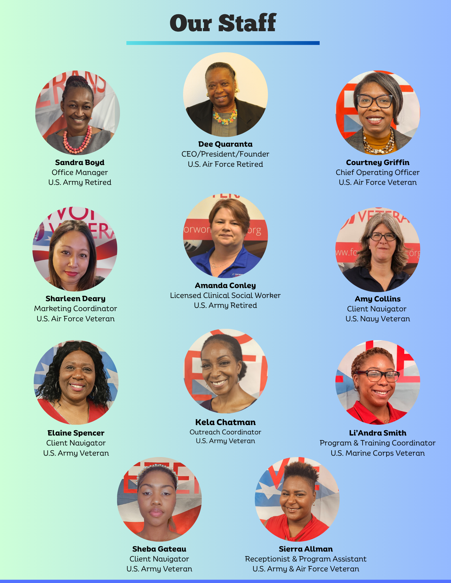Northeast Florida Women Veterans, Inc. is focused on ensuring women who have served on active duty, National Guard or Reserves and their children, transition into the civilian community with the tools they need to become self-sufficient. We operate a resource center to provide supportive and career services to women veterans, plan and participate in community events to encourage women veterans to get involve and reintegrate into the community they live, and advocate for and promote community awareness of their challenges and accomplishments at the local, state and national level ensuring each has a voice.