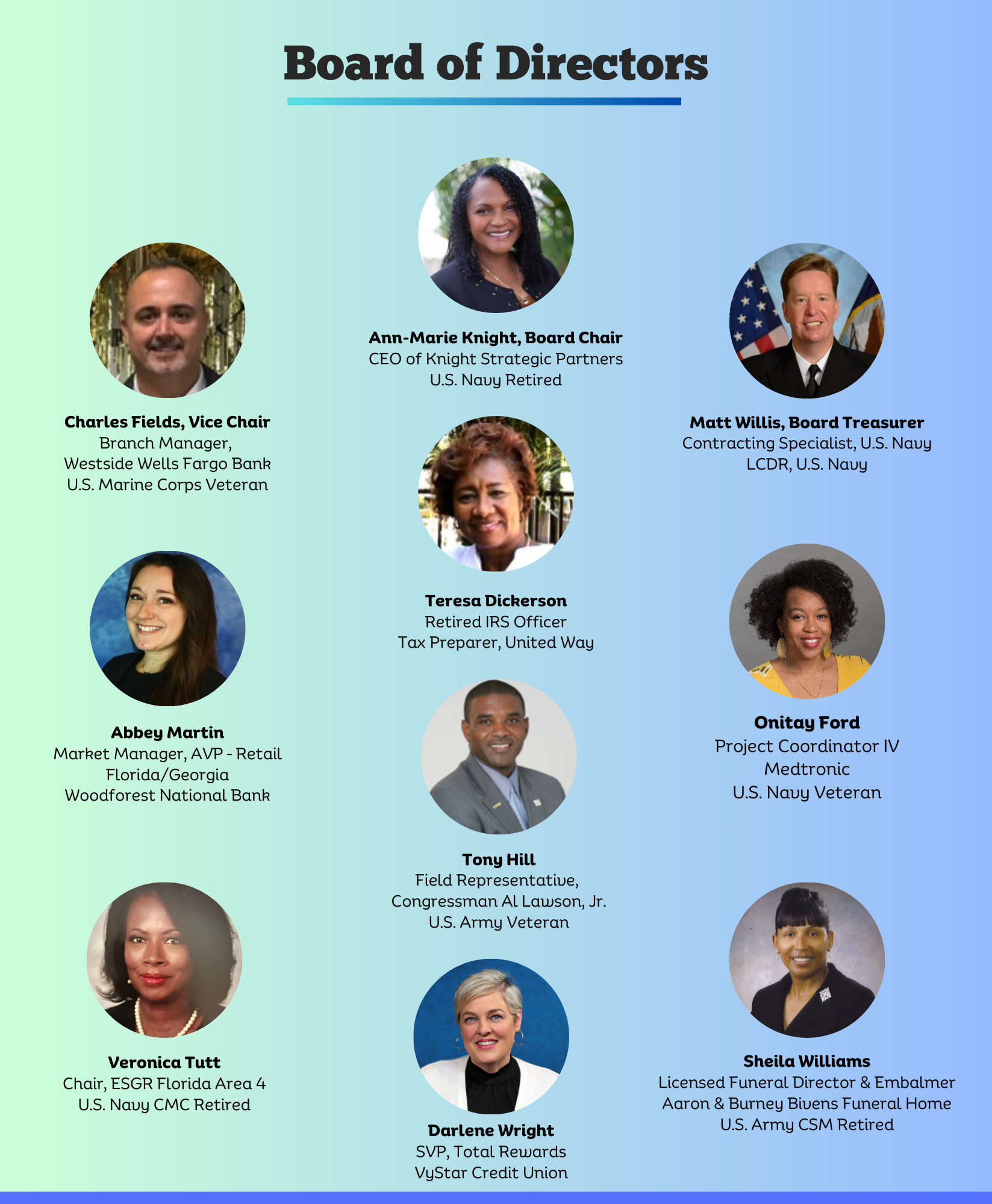 Women Veterans Ignited, Inc., formerly Northeast Florida Women Veterans, Inc., is focused on ensuring women who have served on active duty, National Guard or Reserves and their children, transition into the civilian community with the tools they need to become self-sufficient. We operate a resource center to provide supportive and career services to women veterans, plan and participate in community events to encourage women veterans to get involve and reintegrate into the community they live, and advocate for and promote community awareness of their challenges and accomplishments at the local, state, and national levels ensuring each has a voice.